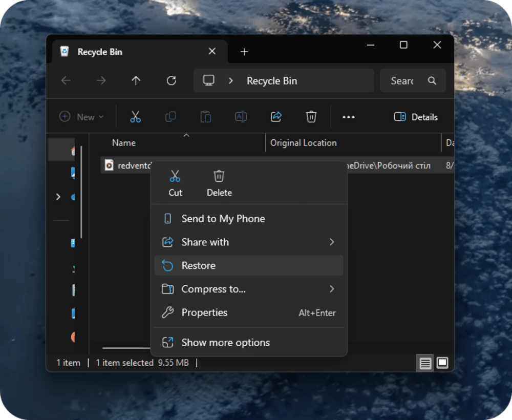 How to restore music from the Recycle Bin: