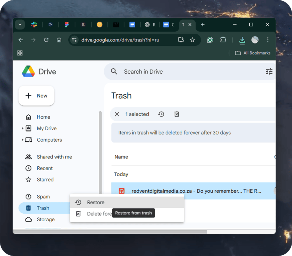 Google Drive deserves special attention. Unlike iCloud or OneDrive, where bin deletion on your device often triggers deletion in the cloud, Google Drive handles sync differently. When you delete a synced file from your computer, Drive may unsync the file rather than remove it fully. As a result, the file may disappear from your system but still stay in Google Drive’s Trash. This gives you an extra window to restore deleted music even when the local bin looks empty.