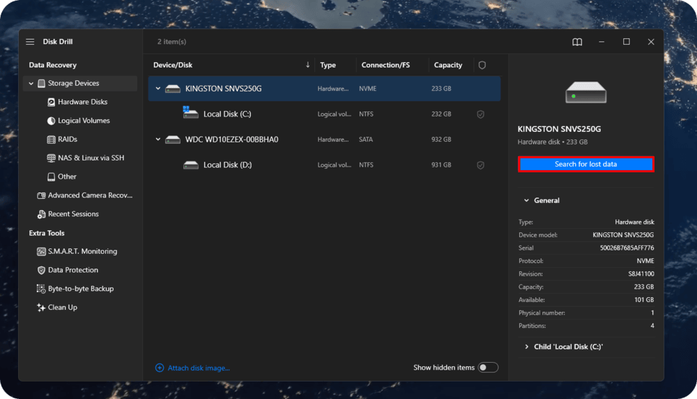 We’ll use Disk Drill. The tool offers a precise way to recover lost music files after a format, file system damage, or permanent deletion. It supports MP3, WAV, FLAC, AAC, and AIFF on both Windows and macOS.